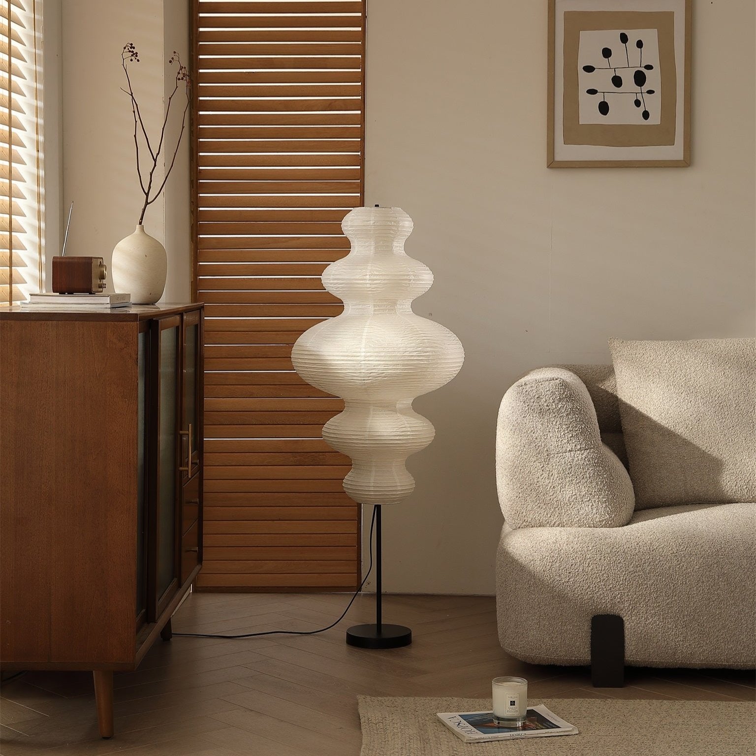 Illuminate your home with the mesmerizing Zephyr Floor Lamp, featuring a uniquely crafted lampshade resembling a graceful tornado. Handmade from high quality delicate paper that exudes a wabi-sabi warm tone, the organic shape of the paper lampshade casts a soft, inviting glow that enhances any living space with a cozy and elegant ambiance.